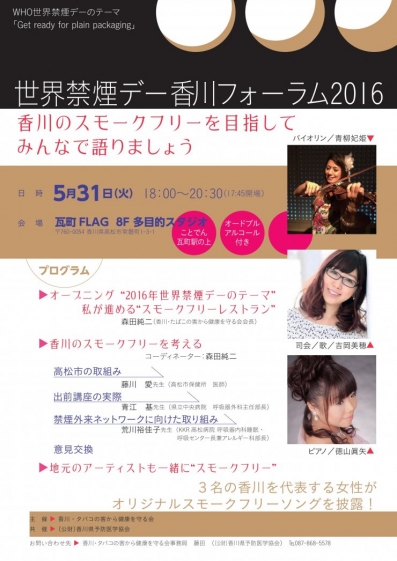 今月5月31日(火)に、世界禁煙デーのイベントが高松であります。
